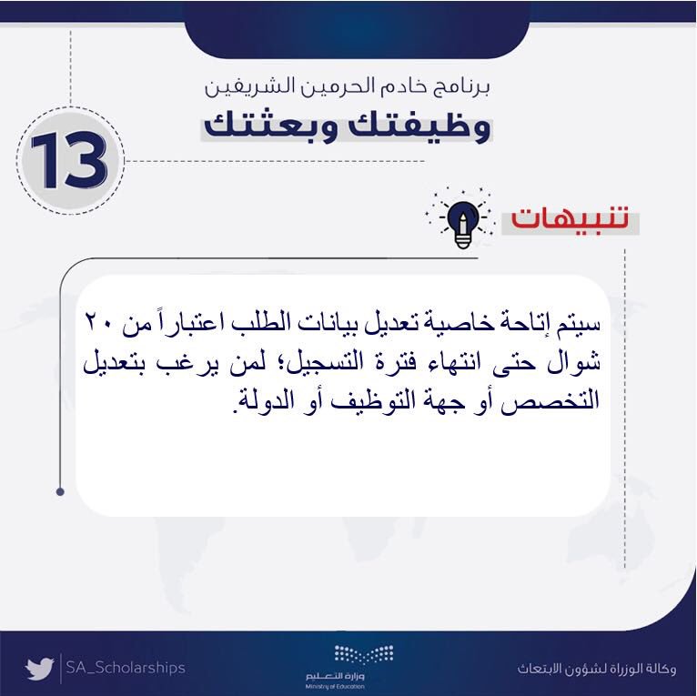 شرح مفصل لكيفية الاشتراك في برنامج خادم الحرمين الشريفين للابتعاث الخارجي والوثائق المطلوبة وكل كل ما يتعلق بالمستويات الدراسية المدعومة من قبل بعثة خادم الحرمين. برنامج خادم الحرمين الشريفين للابتعاث الخارجي المرحلة الثالثة 1436 1440هـ. برنامج سفير التقديم وزارة التعليم برنامج سفير التقديم الرئيسية الرئيسية. أن يكون المتقدم سعودي الجنسية.