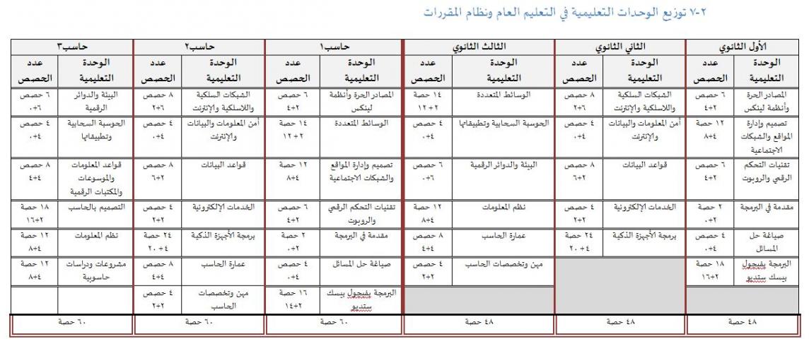 الخطة الدراسية مواد نظام المقررات للمرحلة الثانوية