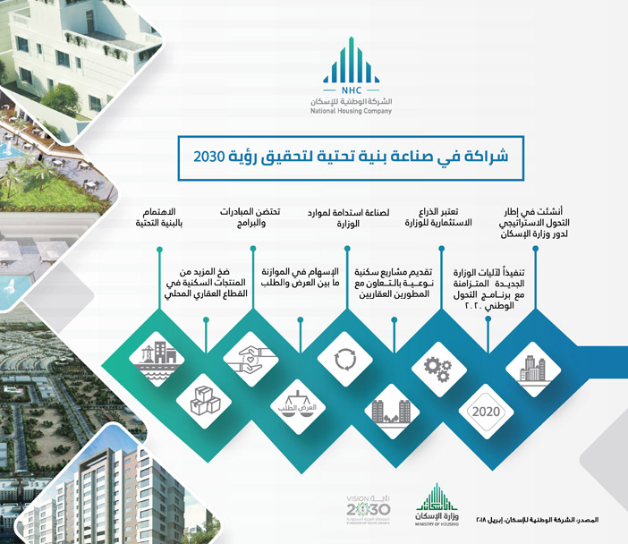 ت سخ ر الشركة الوطنية للإسكان كافة مواردها للاستثمار في مبادرات وبرامج ت قد م حلول ا سكنية وتمويلية لقطاع التطوير العقاري المحلي في سبيل بناء بيئة سكنية ملائمة للمواطنين بمواصفات وجودة تصل إلى المستهدف.