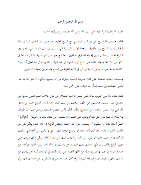 بيان شديد اللهجة قوي الحجة من العلامة حسن بن عبدالوهاب البنا في محمد بن هادي هداه الله منتديات التصفية و التربية السلفية